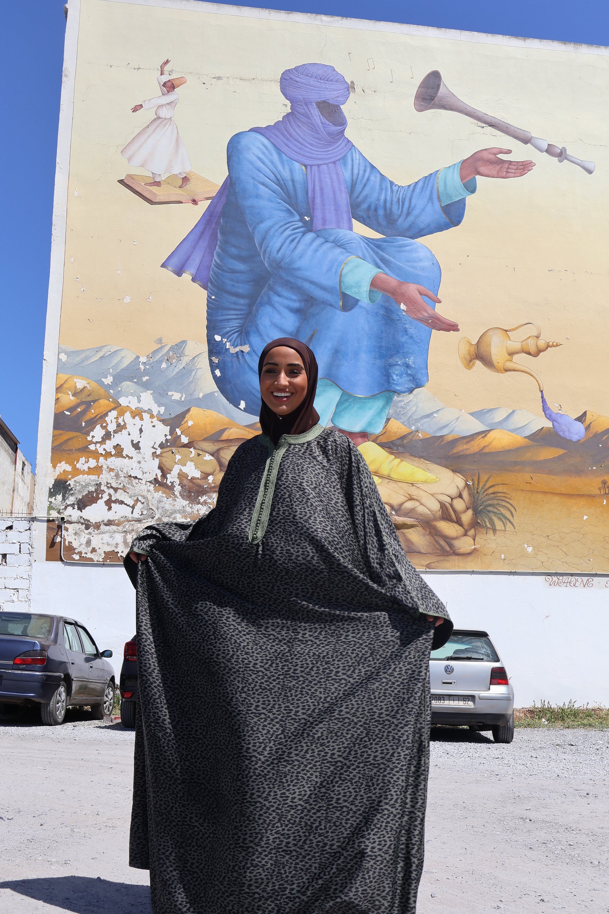 Abaya fluide en crêpe de soie, imprimé léopard, sublimée par des broderies marocaines traditionnelles. Tissu léger, doux et élégant. Sa coupe ample convient confortablement jusqu’à une taille XXL. Parfaite pour un look affirmé, chic et raffiné.