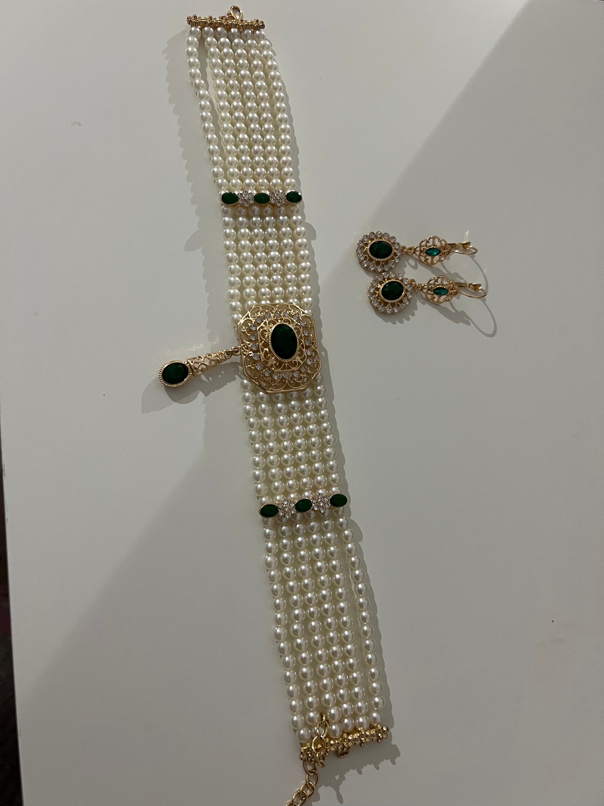 Ce collier ras de cou élégant est accompagné de boucles d'oreilles assorties pour compléter votre look.