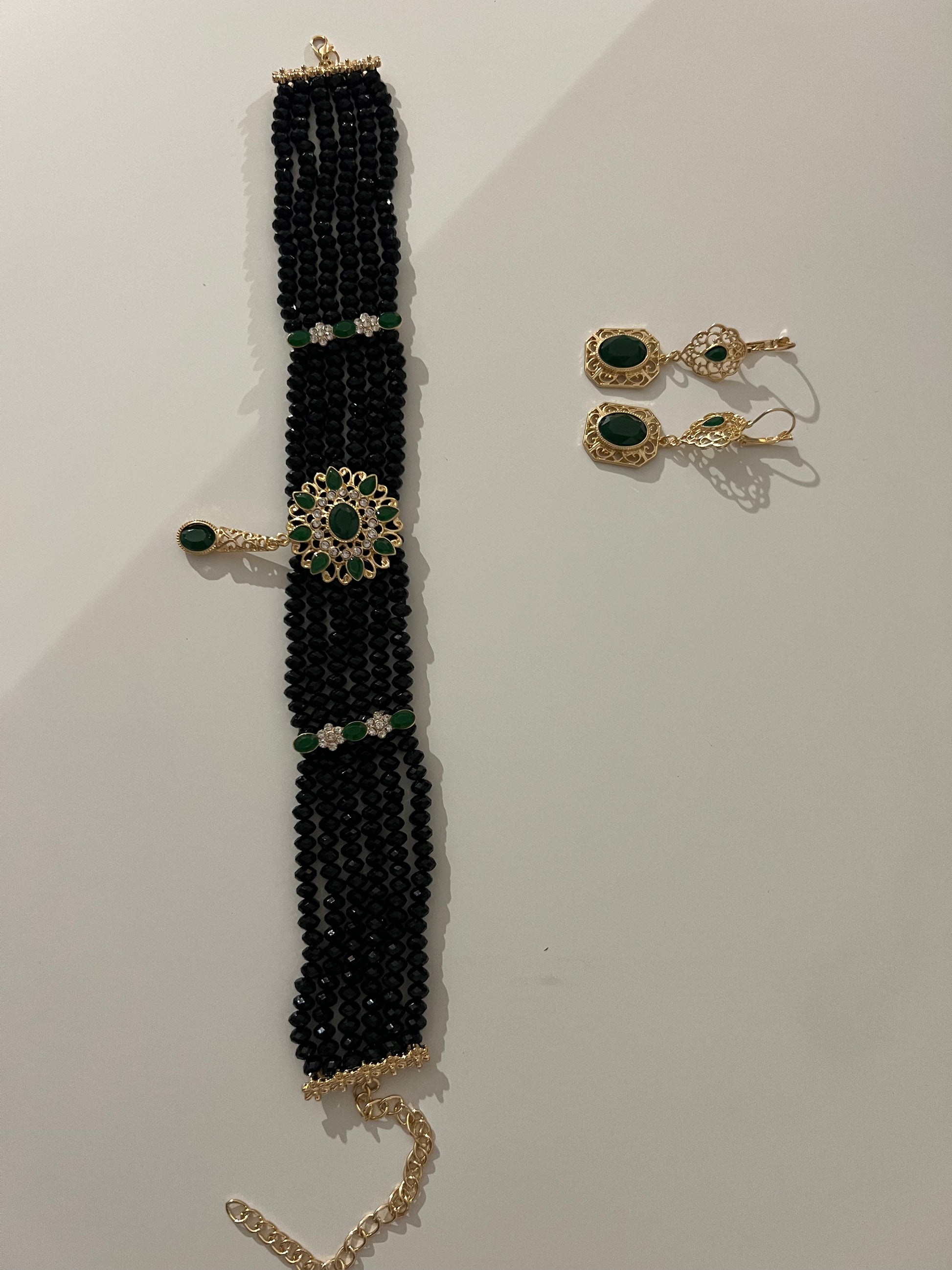 Ce collier ras de cou noir est accompagné de boucles d'oreilles assorties pour compléter votre look.