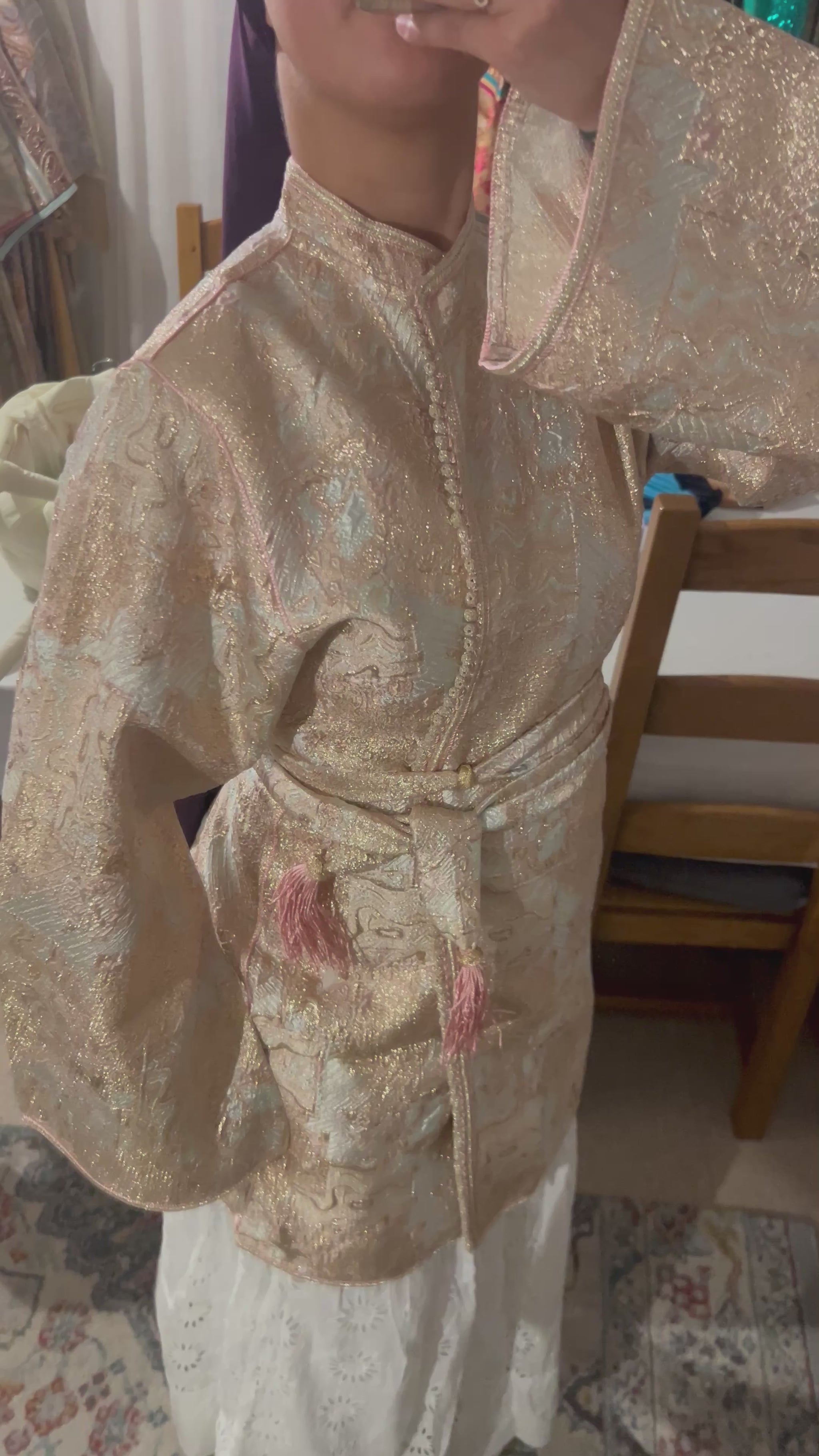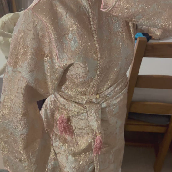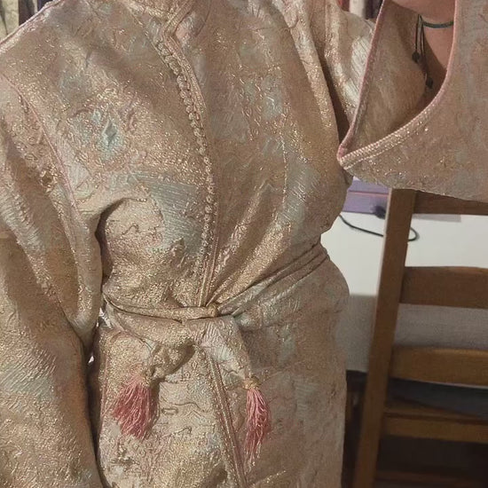 Kimono court en brocard rose – Élégant, adaptable et fait main
