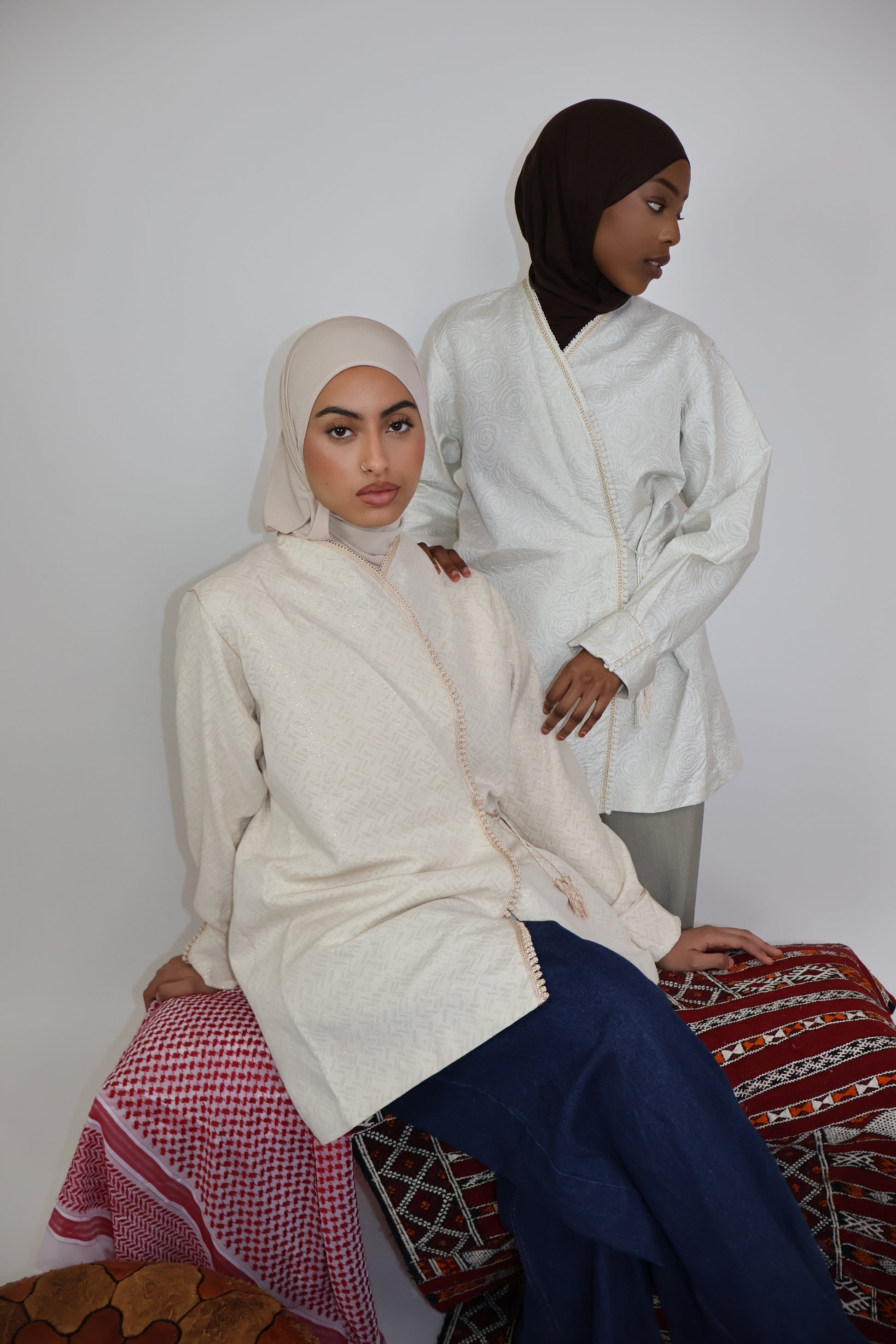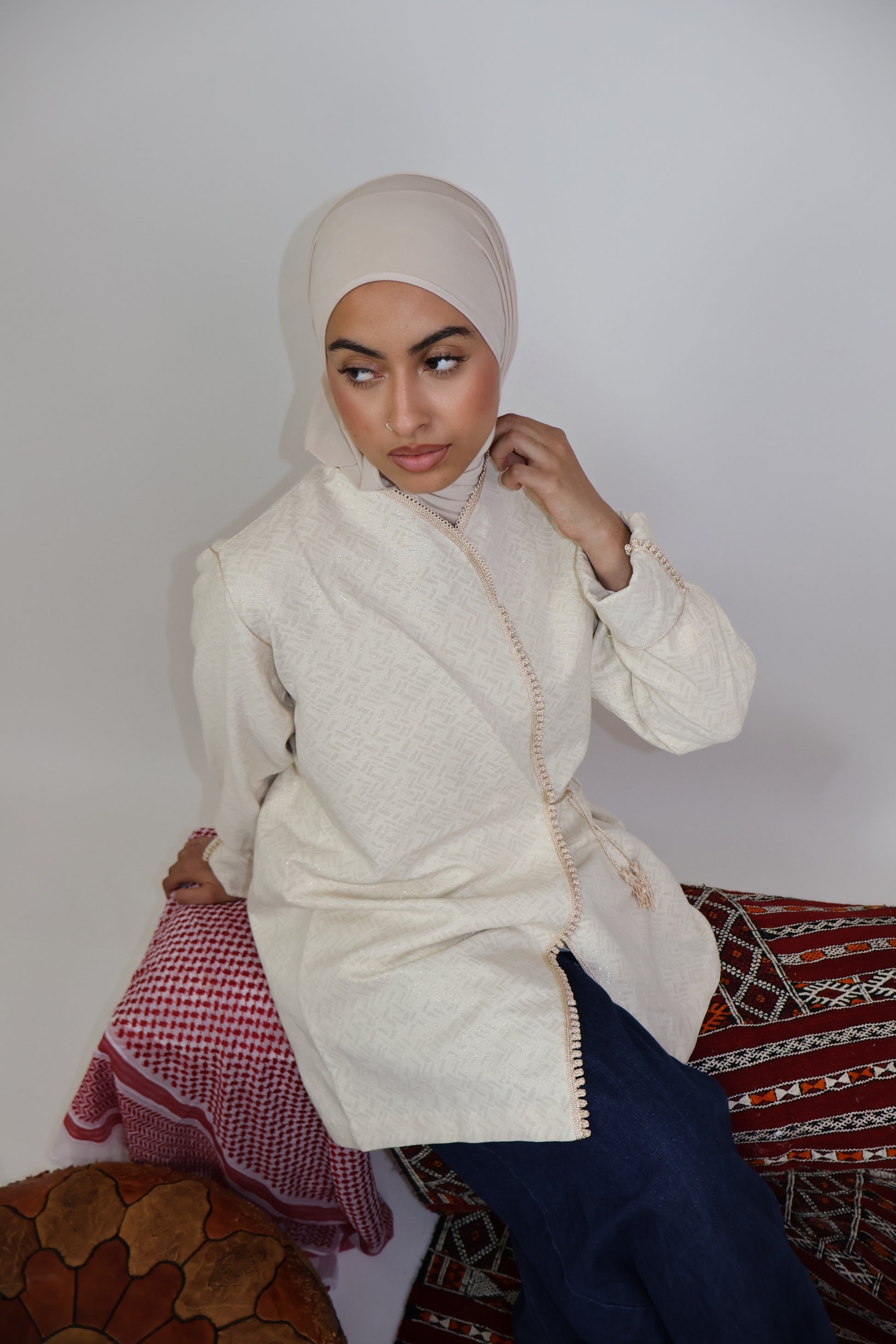 Kimono Croisé Court – Brocard Beige