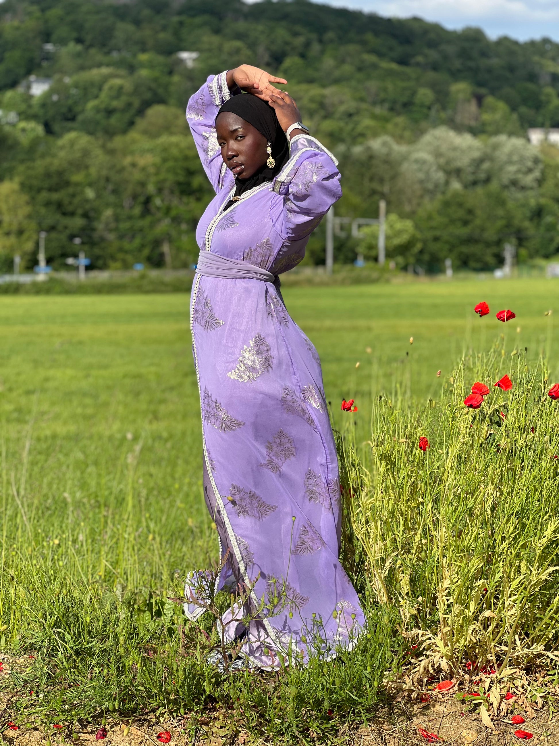 La Takchita LILA charme par sa teinte douce et ses ornements délicats. Idéale pour ajouter une touche de raffinement et de grâce à vos moments précieux.